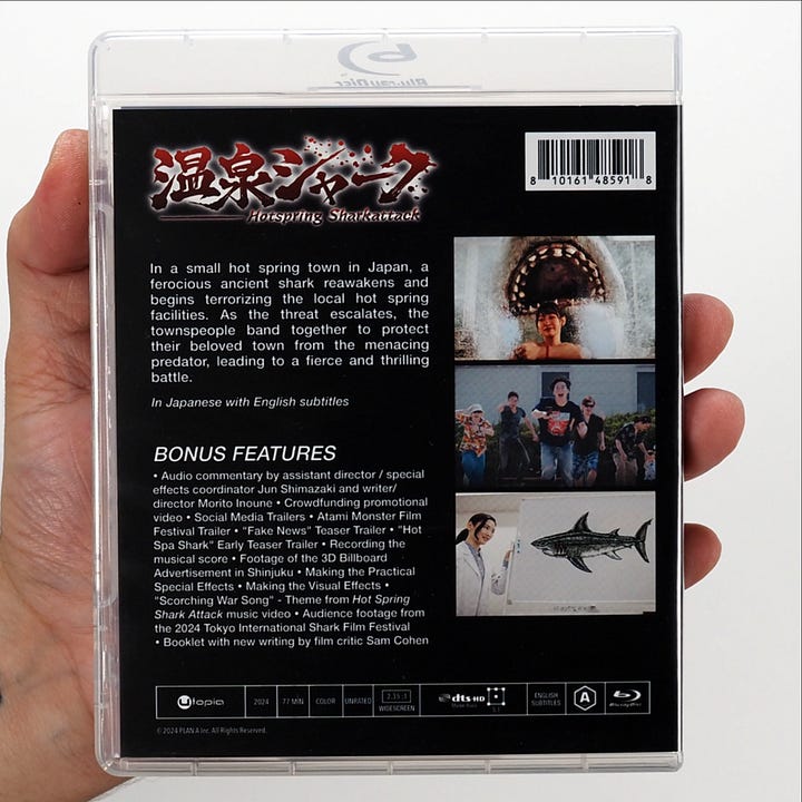 Utopia Distribution has announced that they will be releasing Morito Inoune’s Hotspring Sharkattack (2024) to Blu-ray in North America on 12/30/25 (though it appears orders through Vinegar Syndrome may be shipping around the end of November).